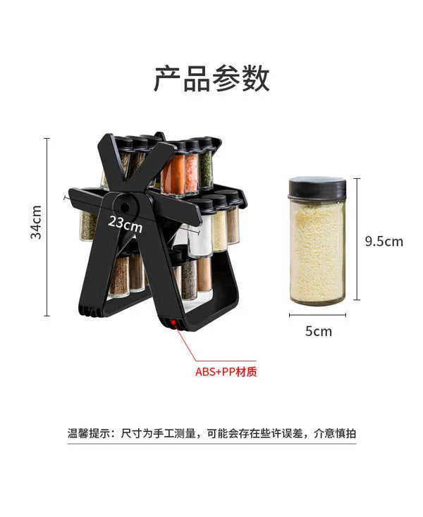Keep your spices perfectly organized with this rotating rolling spice rack. Designed with 18 jars, it saves space and makes cooking more convenient.